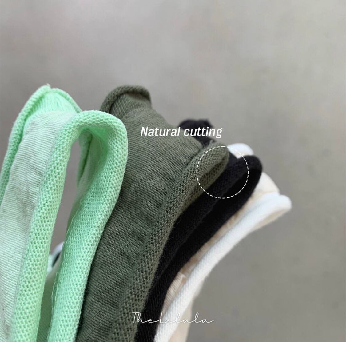 切りっぱなしのような生地の端が